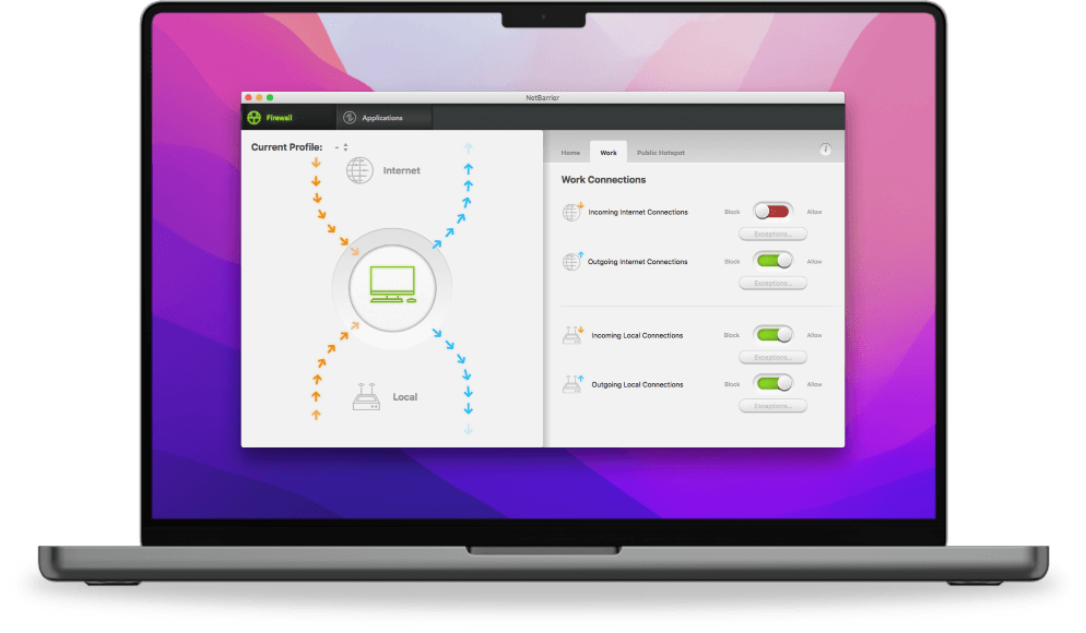 NetBarrier is the world's best two-way firewall for Mac, providing intelligent inbound and outbound protection for both Wi-Fi and wired networks.