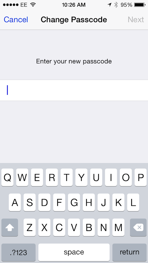 Now that you’re using Touch ID, that four-digit passcode seems pretty feeble, doesn’t it? Well, you’re not limited to just four digits. Why not set up a more secure passcode? To do this, you want to be in the Touch ID & Passcode settings, as above. Scroll down a bit, and you’ll see a toggle that says Simple Passcode. Toggle this off, enter your passcode, then enter a new passcode. You’ll see that you can use the entire keyboard; you can create a passcode with letters and/or numbers, and one as long as you want. Don’t make it too long, but anything is better than those four digits, even four letters is much more secure (as long as it’s not an easy-to-guess word, such as the name of a child or pet).
