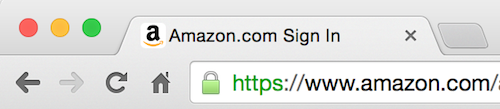 Sometimes you will see an indication of an even stronger level of security, Extended Validation SSL. Web browsers generally indicate this by displaying not just the name of the domain, but the full company name, and showing it in green: