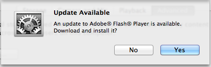 If you do not have the latest Flash Player version, you will see a notification that an update is available, and it will ask if you want to download and install it.