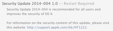OS X Mountain Lion users go here to download Security Update 2014-004 (139.3 MB).