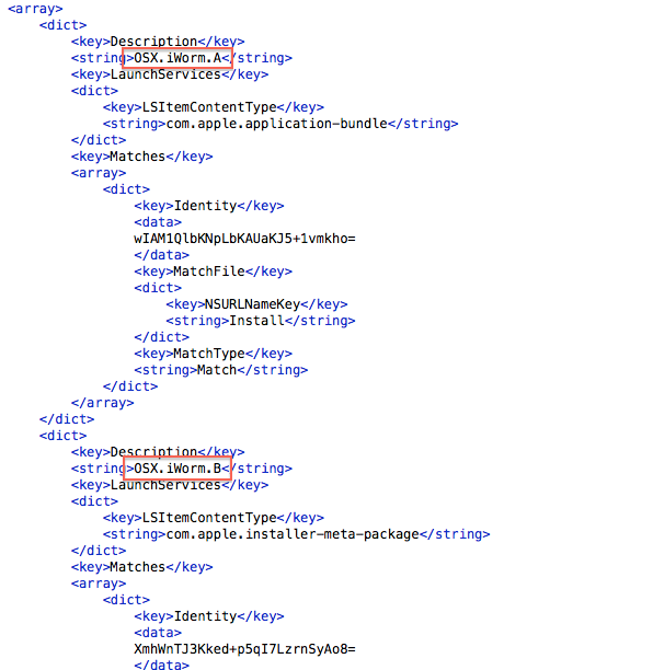 Apple has released an update to its XProtect.plist definitions file to provide Mac OS X with basic detection for iWorm malware. This update detects three variants of OSX/iWorm, which Apple labelled OSX.iWorm.A, OSX.iWorm.B, and OSX.iWorm.C.
