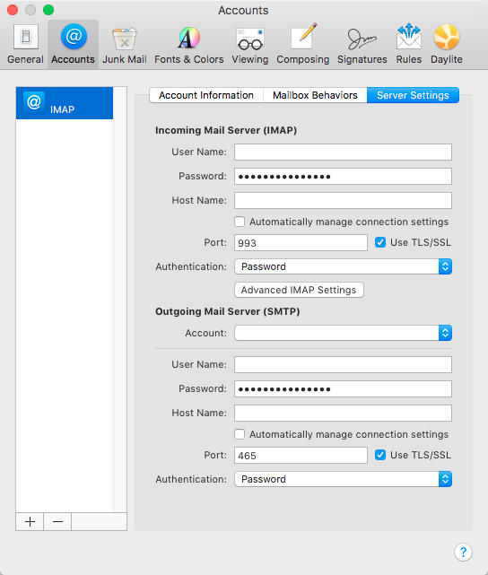 Make sure your account is configured to use TLS/SSL with the right port and authentication. The right settings for your account can typically be found on the website of the company that provides your email address. This will ensure a secure connection between your Mac and the email server. It’s a good idea to check these settings for every email account you have, not just the one you’ll be using with S/MIME.