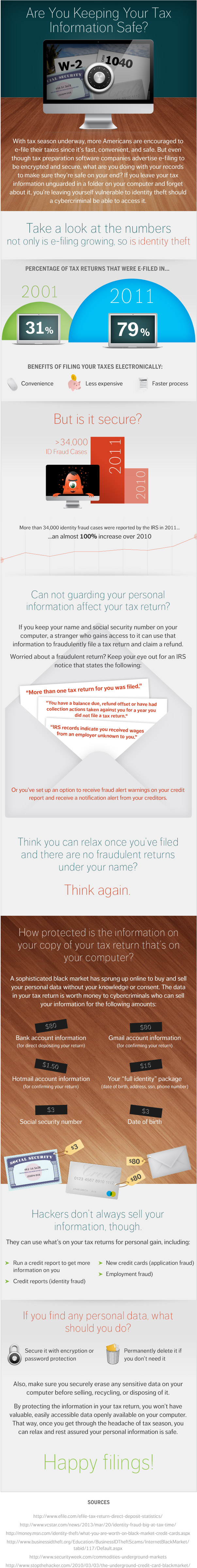 April 15 is fast approaching, and many of you have yet to file your taxes. Each year more and more people choose to e-file tax returns, since it’s typically fast, convenient, and fairly straightforward. But after you send your information off to the mean ol’ IRS, don’t forget that you have an unguarded, vulnerable, and very important file containing sensitive personal information on your computer.