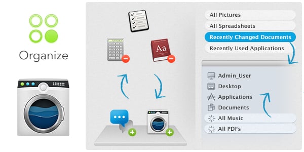 Do you ever wish you had more of those “Open Recent” menus on your systems, so you could more easily get at all those applications or documents you access all the time, rather than having to dig around or remember where things are? The Organize tab in Washing Machine can help you create Smart Folders that automatically bundle your most frequently used files and application—all in one place.