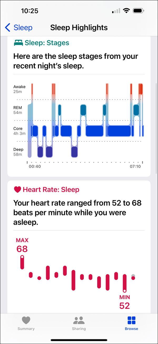 If you tap Highlights, you can see daily, weekly, monthly, and yearly sleep trends.