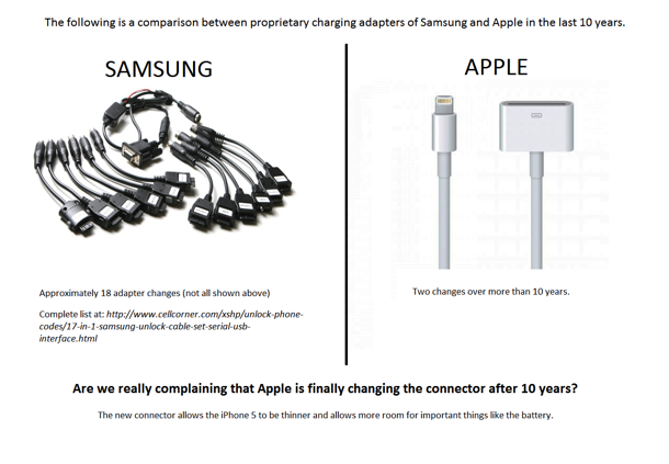 However, one reddit user created this little comparison between proprietary charging adapters for Samsung and for Apple in the last decade: