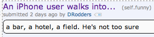 A twist on the “So and so walks into a bar” joke (via reddit):