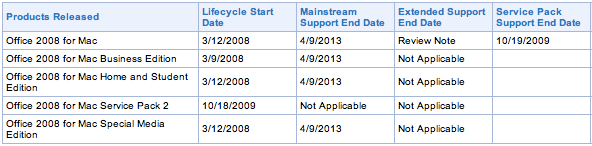 Microsoft has announced the company will be ending support for Office for Mac 2008 on April 9, 2013. This announcement comes on short notice, just five days before mainstream support for Office for Mac 2008 will end.
