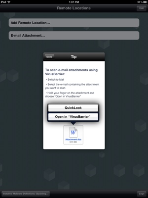 When you install VirusBarrier iOS and launch it for the first time, a tool tip will pop up and provide simple instructions on how to use the app.