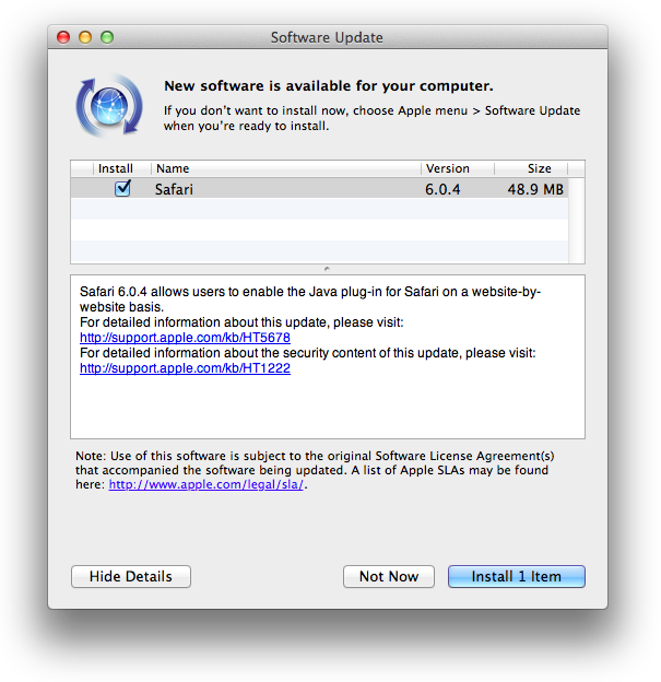 Safari 6.0.4 Update Fixes WebKit Flaw and Improves Java Control