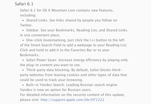 Apple has released Safari 6.1 with patches for 21 vulnerabilities to improve its web browser security. The Safari update addresses a number of Webkit flaws that may lead to information disclosure and cross-site scripting attacks, as well as a Safari vulnerability related to arbitrary code execution.